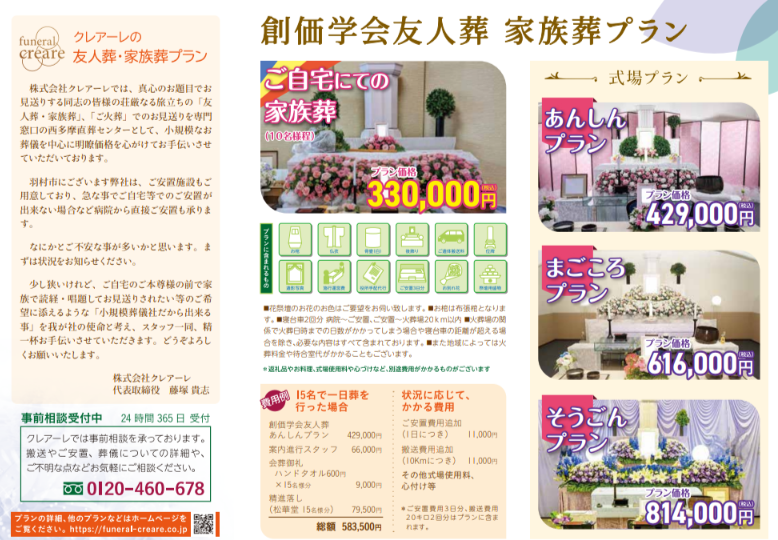 誠に不本意ではございますが、葬儀プラン等の価格改定を実施させて頂きたく存じます。