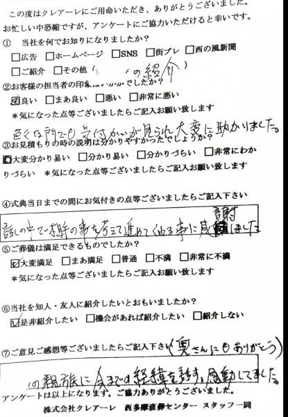 西多摩直葬センターとして直葬スタンダードプランにてお手伝いさせて頂きました。